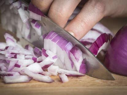 However there s a downside to all of that delicious flavor producing sulfur it seems virtually impossible to chop an onion without crying. Now with your knife parallel to the root carefully slice to create perfectly diced onion.